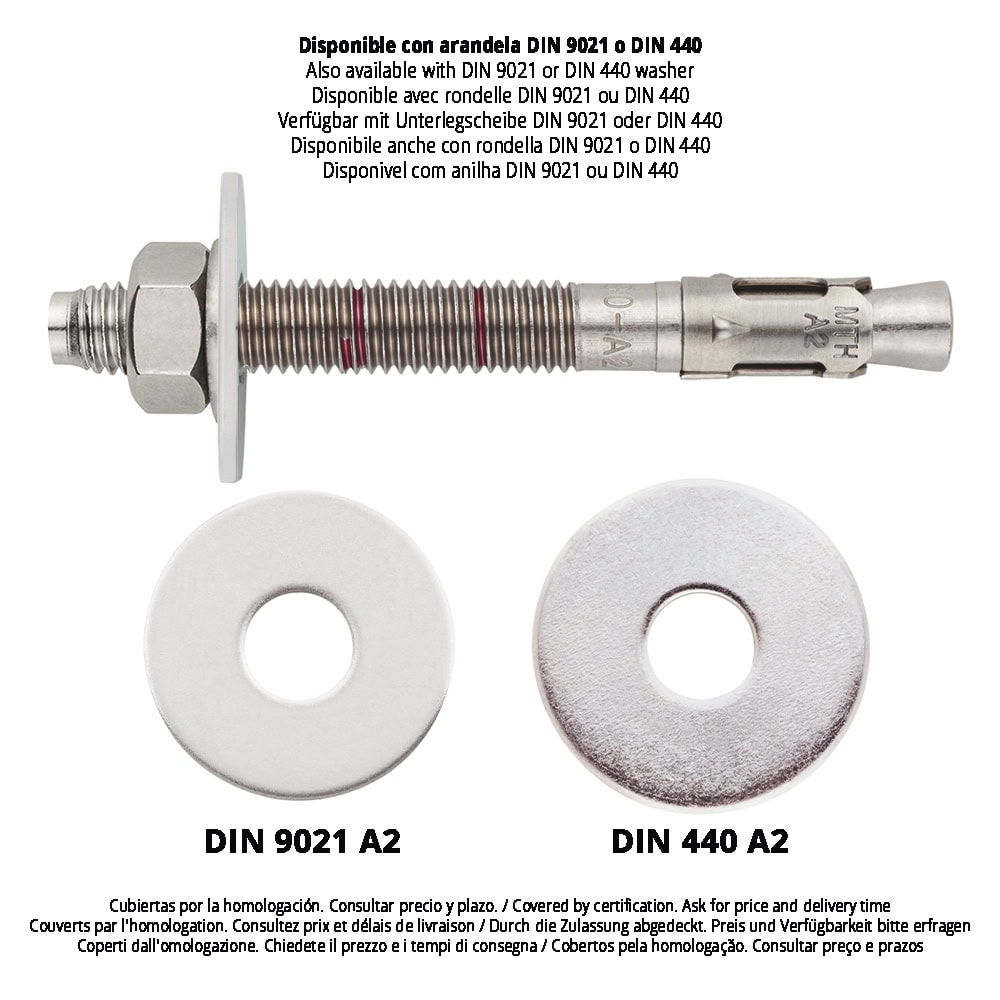 tfix - Dicke des Anbauteils 122 SW - Schlüsselweite 10 df - Ø Durchgangsbohrung im Anbauteil 7 Tins - Montagedrehmoment (Nm) 7 hef - Effektive Verankerungstiefe 40 hnom - Gesamtlänge des Ankers im Beton 50 h1 - Min. Bohrlochtiefe 55 d0 - Ø Bohrdurchmesser 6 hmin - Min. Dicke des Anbauteils 100 L - Länge 180 MI08050 ● M8 x 50 Ø8 4 100 A 0 100 800 8423533019301
