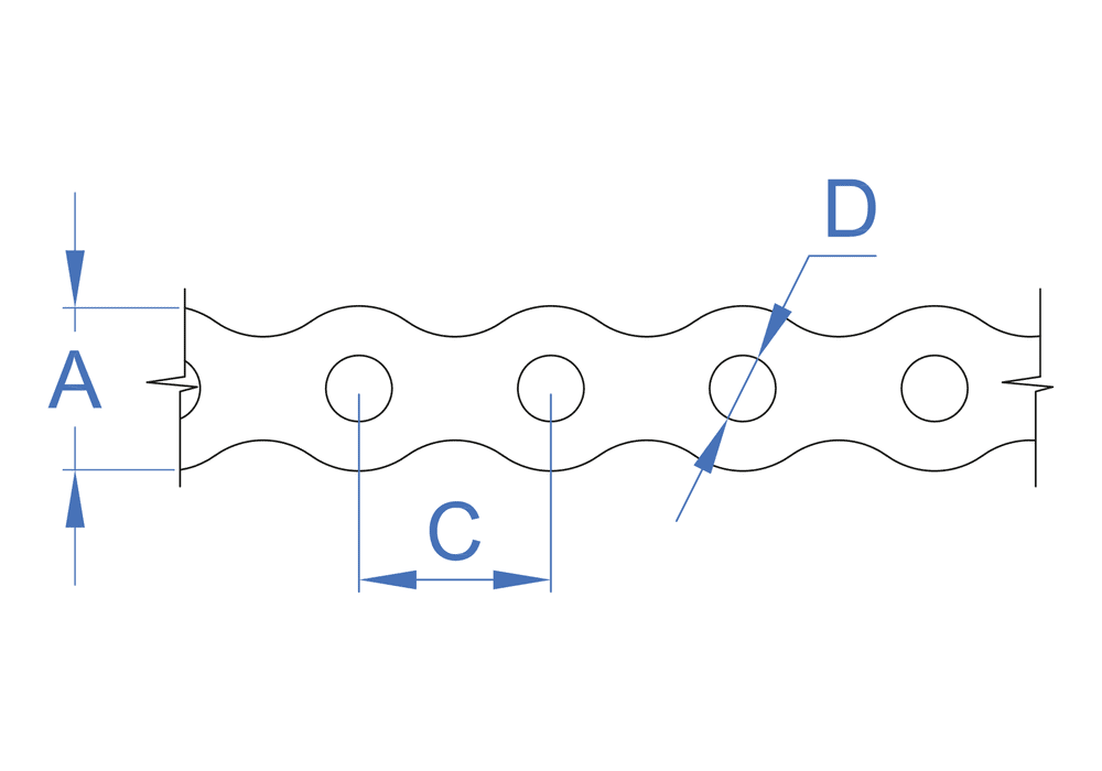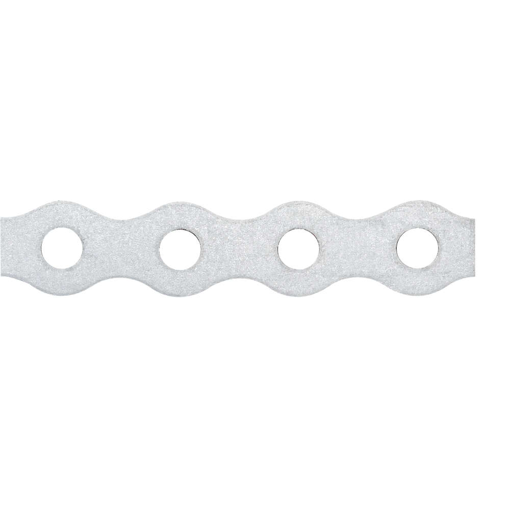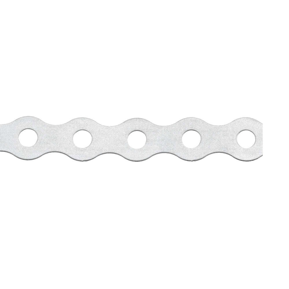 Curved perforated tape. It can be used to secure light pipes to surfaces such as concrete or cellular concrete. Allows quick and easy installation of metal or plastic pipes. Can be cut to size. Also useful for other types of fastenings, such as connecting masonry to pillars or ceilings. Made of A2 stainless steel, a highly resistant material that allows it to be used in highly corrosive environments.