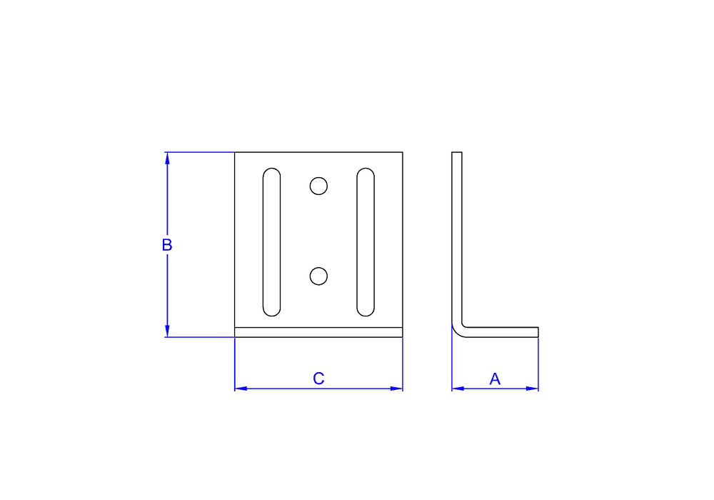 Adjustable bracket for fixing wooden pieces together. It can be used to make non-structural joints with solid, laminated or composite wood. Its two sides have collided holes, which allow the position of the elements to be easily adjusted. It can be installed with the help of nails or lag screws. It is made of zinc-plated steel.