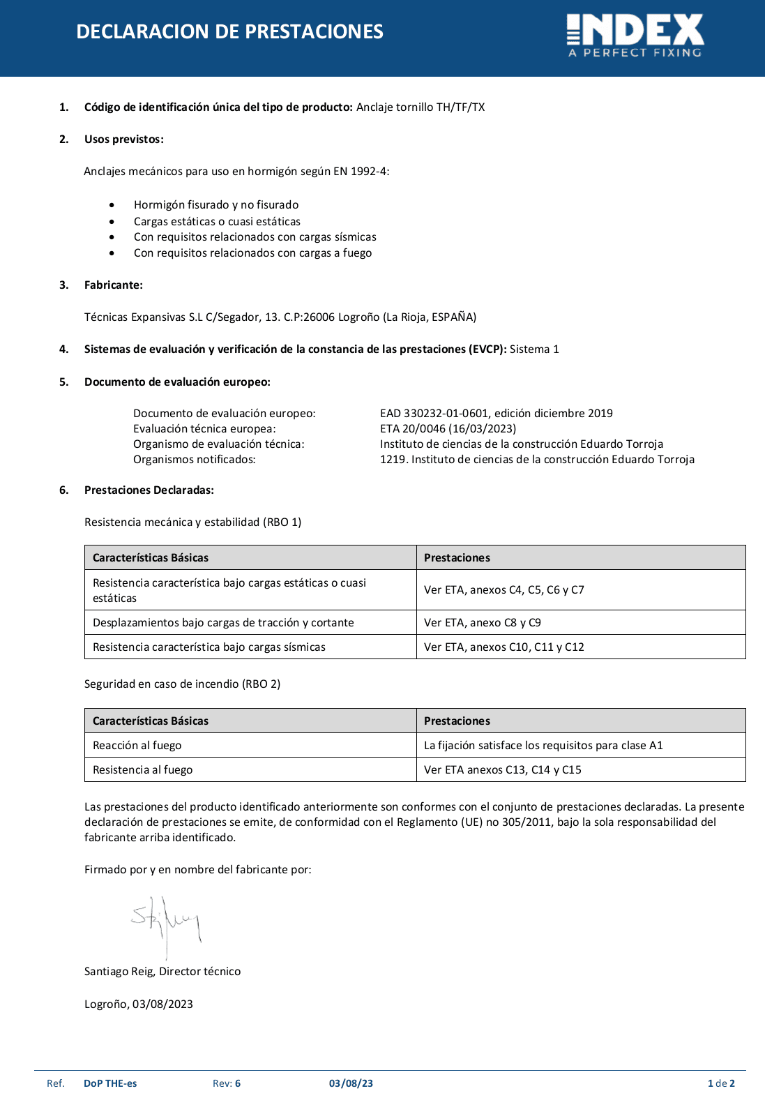 Gli estremi della Dichiarazione di Prestazione sono riportati sull’etichetta come parte dei requisiti della marcatura CE del prodotto.