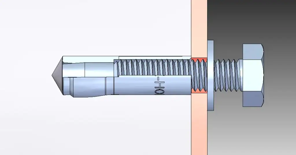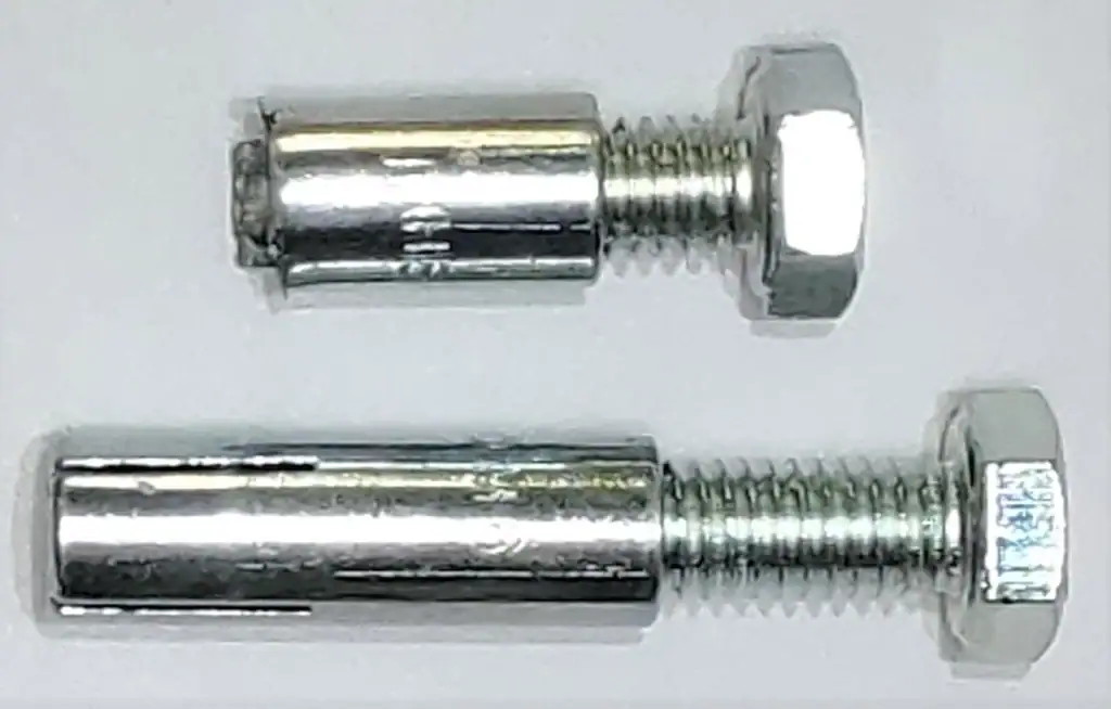 - Una longitud excesiva podría dar lugar a que la punta del perno entrase en contacto con el cono de expansión del anclaje antes de que la cabeza del perno se apoye en el material a fijar. En ese caso el perno tiene impedido su avance, por lo que aplicación de un par sucesivo podría ocasionar la rotura de la camisa del anclaje por el efecto de tracción que los hilos de rosca del perno ejercen sobre la camisa.