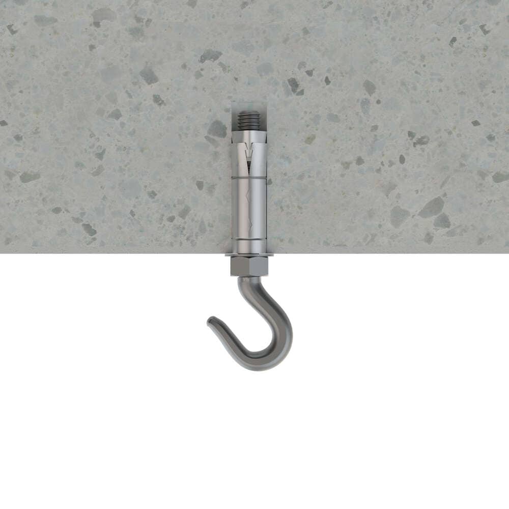 Anclaje de expansión con gancho para cargas medias y altas. Empleo en materiales macizos y huecos. Especilamente útil para materiales de baja resistencia por su mayor capacidad de expansión. Instalación por par controlado. Fabricado en zamak 5 y acero con recubrimiento zincado.