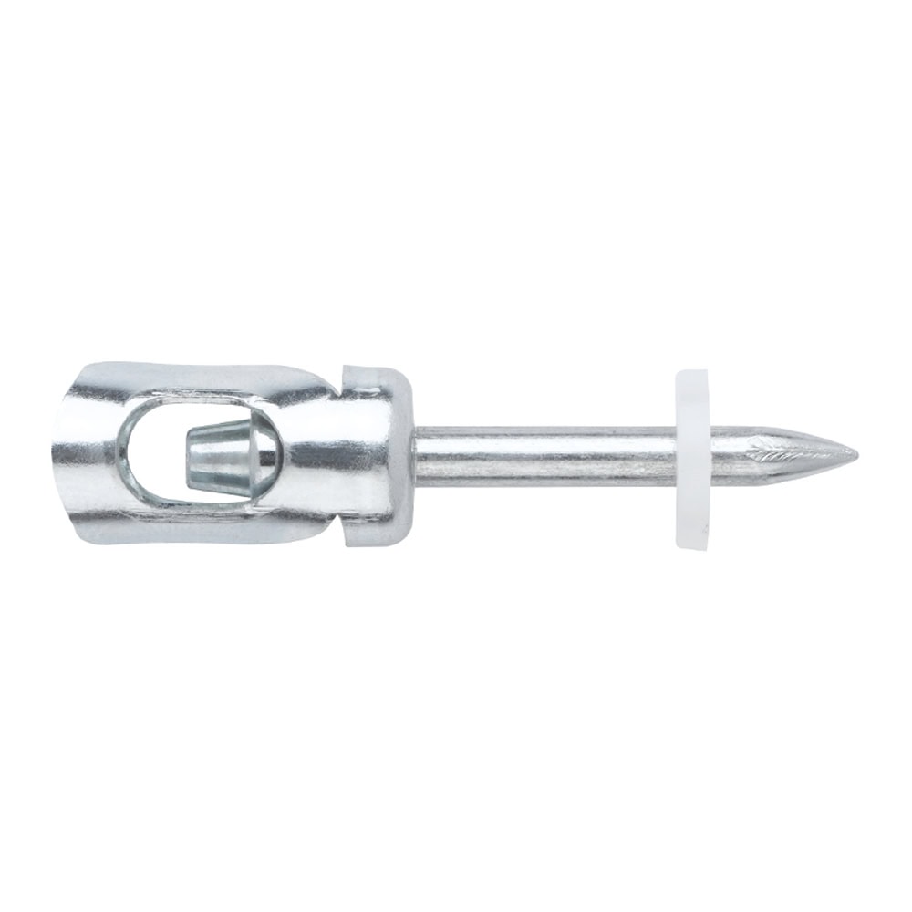 Clavos con extensión para la instalación de falsos techos. Son compatibles con la pistola a pólvora FP12GUN y otras pistolas de calibre 12 mm. Cuentan con una arandela plástica, que ayuda a amortiguar el golpe de la fijación. Se pueden emplear sobre vigas IPN o chapas. Están fabricados en acero zincado.
