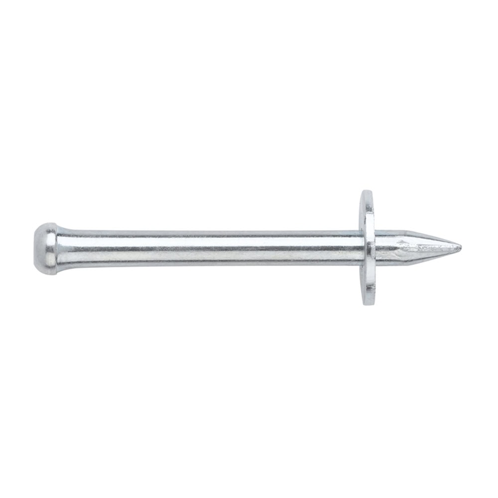 Clavos para la pistola a pólvora FP12GUN y otras clavadores de calibre 12 mm. Permiten fijar diferentes elementos sobre superficies de hormigón u hormigón armado. Incorporan una arandela metálica. Están fabricados en acero zincado.