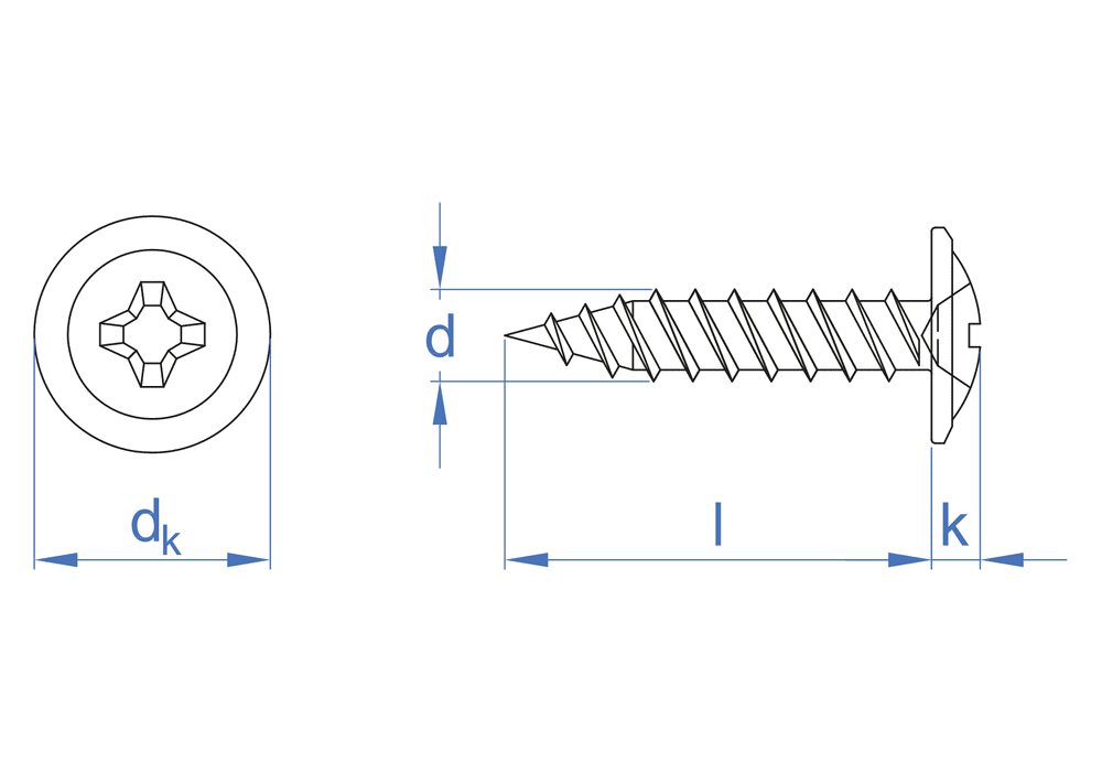 • [TORNILLO DE CABEZA ANCHA] Tornillo con cabeza ancha y arandela, diseñado para fijar placas de yeso o paneles aislantes a perfiles metálicos o madera.