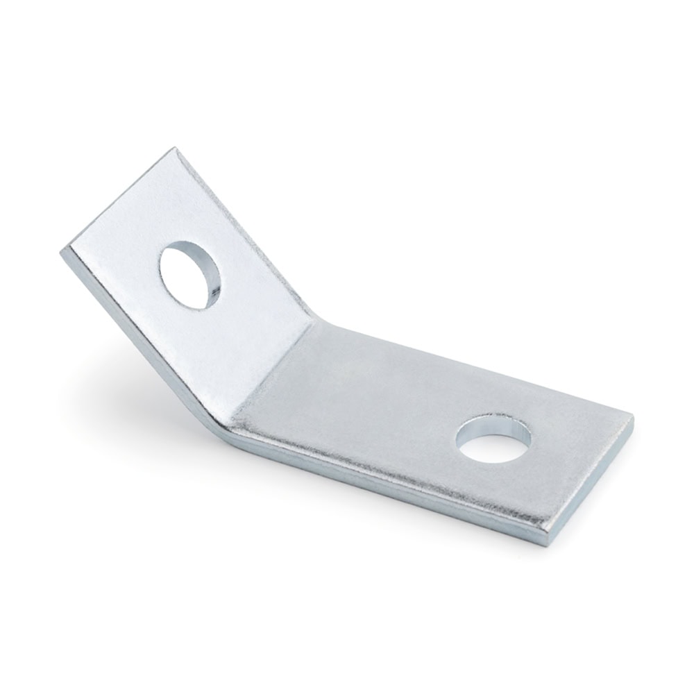 Pieza de unión para guías perforadas Indextrut. Permite conectar dos perfiles para crear distintos tipos de estructuras según las necesidades de la instalación. Está disponible en varios formatos: formando un ángulo de 90º; con un ángulo de 45º o con un ángulo de 135º. Está fabricada en acero con recubrimiento zincado.