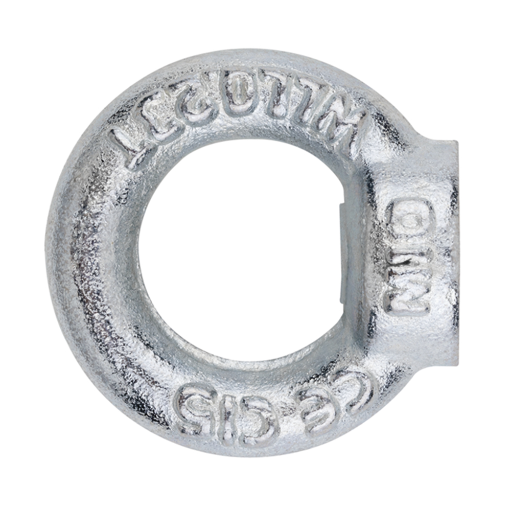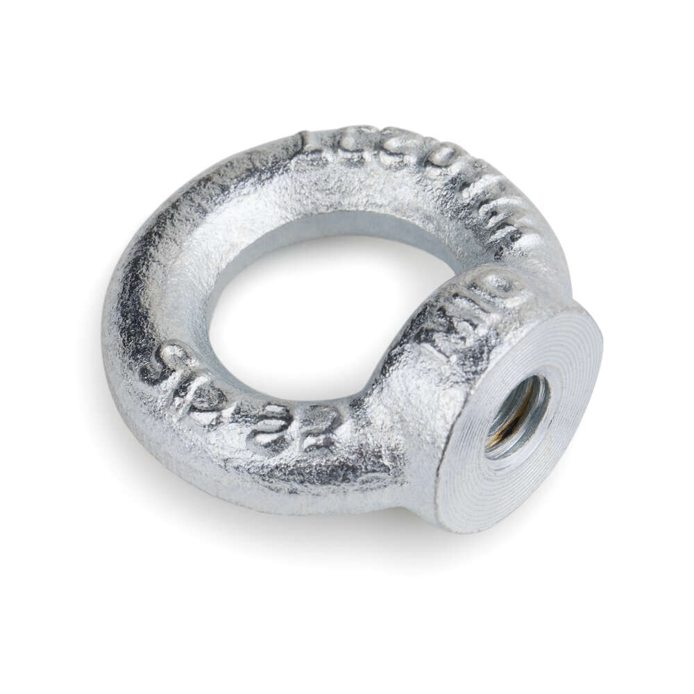 Cáncamo con rosca hembra, fabricado según la norma DIN 582. Se puede emplear con cables, cadenas o cuerdas para la elevación de cargas o la sujeción de elementos. Se puede instalar mediante una varilla roscada u otro elemento con rosca macho. Está fabricado en acero zincado.
