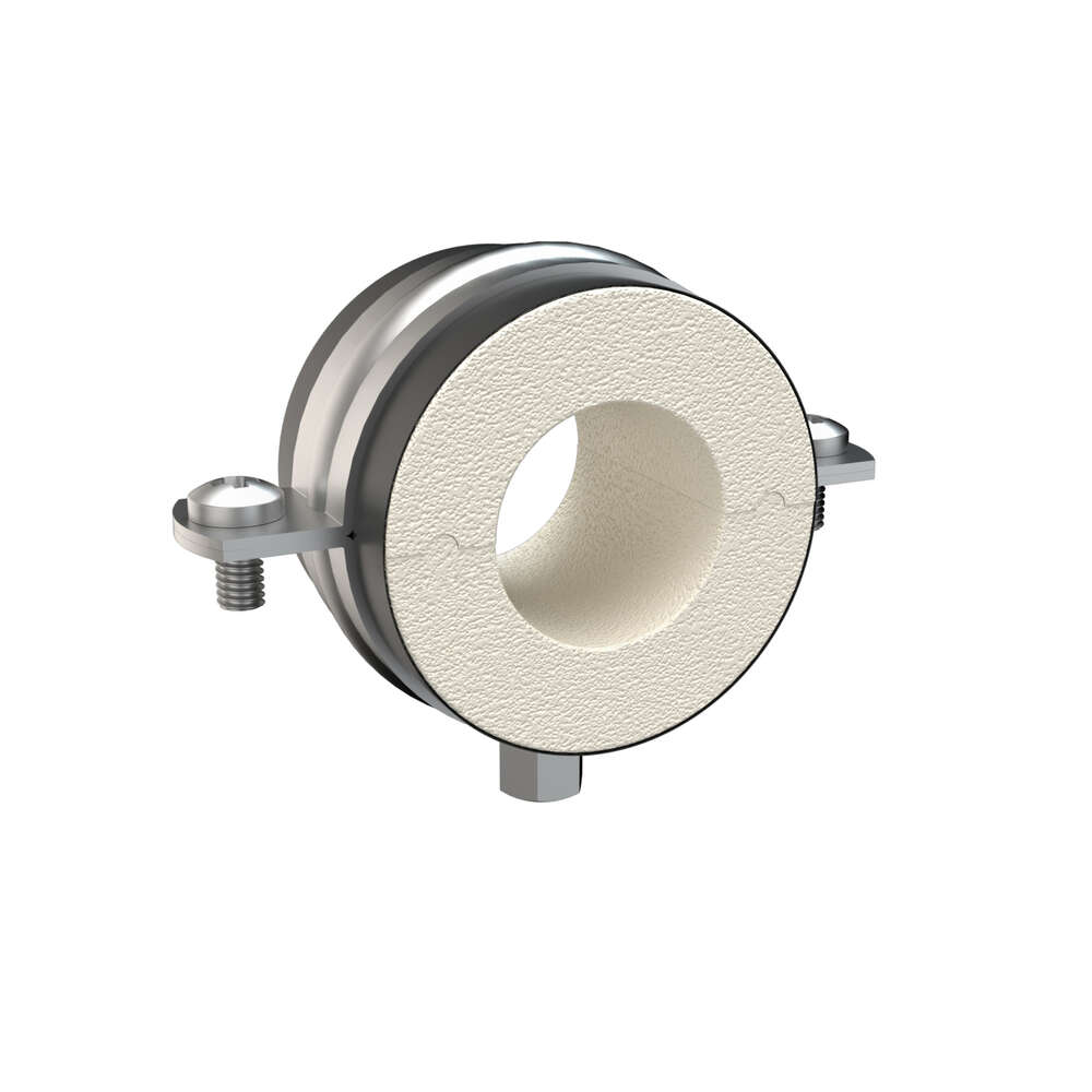 Abrazadera isofónica aislante, diseñada para instalaciones sometidas a temperaturas exigentes. Su capa aislante de espuma de poliuretano rígida y PVC, de 30 mm de grosor, permite evitar los puentes térmicos y la condensación. Puede soportar un rango de temperaturas de los -40º hasta los 105º. Se puede emplear para fijar tubos de entre Ø27 y Ø114 mm (según el modelo). Incorpora una tuerca doble M8/M10 y apertura rápida lateral, que facilita su instalación. Está fabricada en acero zincado.