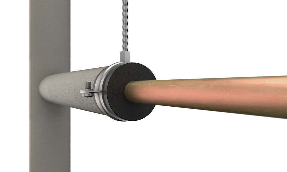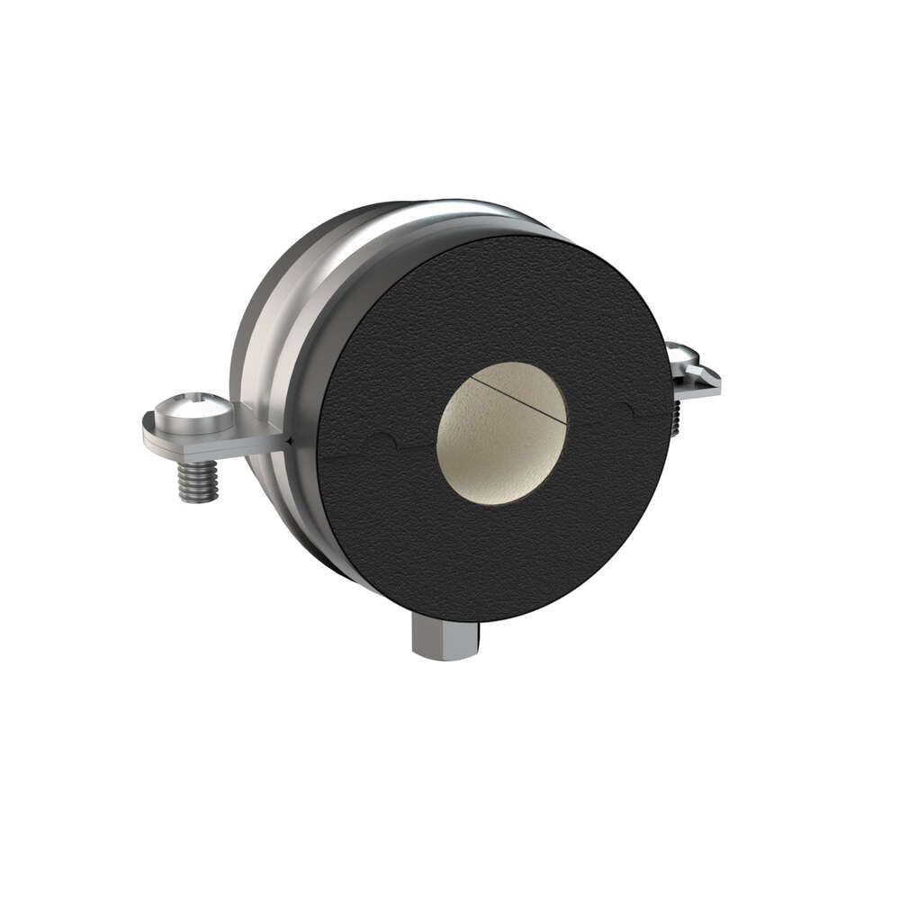 Abrazadera isofónica aislante, especialmente indicada para instalaciones sometidas a temperaturas exigentes. Cuenta con una capa aislante de 19 mm, hecha espuma de poliuretano rígida y PVC. Evita los puentes térmicos y la condensación. Puede soportar un rango de temperaturas de los -40º hasta los 105º. Se puede emplear para fijar tubos de entre Ø10 y Ø114 mm (según el modelo). Incorpora una tuerca doble M8/M10 y apertura rápida lateral, que facilita su instalación. Está fabricada en acero zincado.
