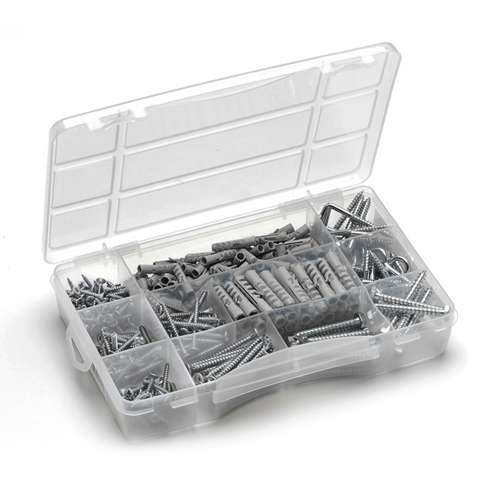 • [415 PIEZAS] El maletín incluye tacos de nylon, tirafondos de cabeza avellanada, tornillos barraqueros de cabeza hexagonal, hembrillas abiertas, hembrillas cerradas y alcayatas.