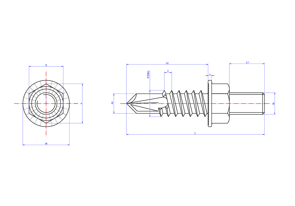 Tornillo punta broca con rosca macho y accesorios