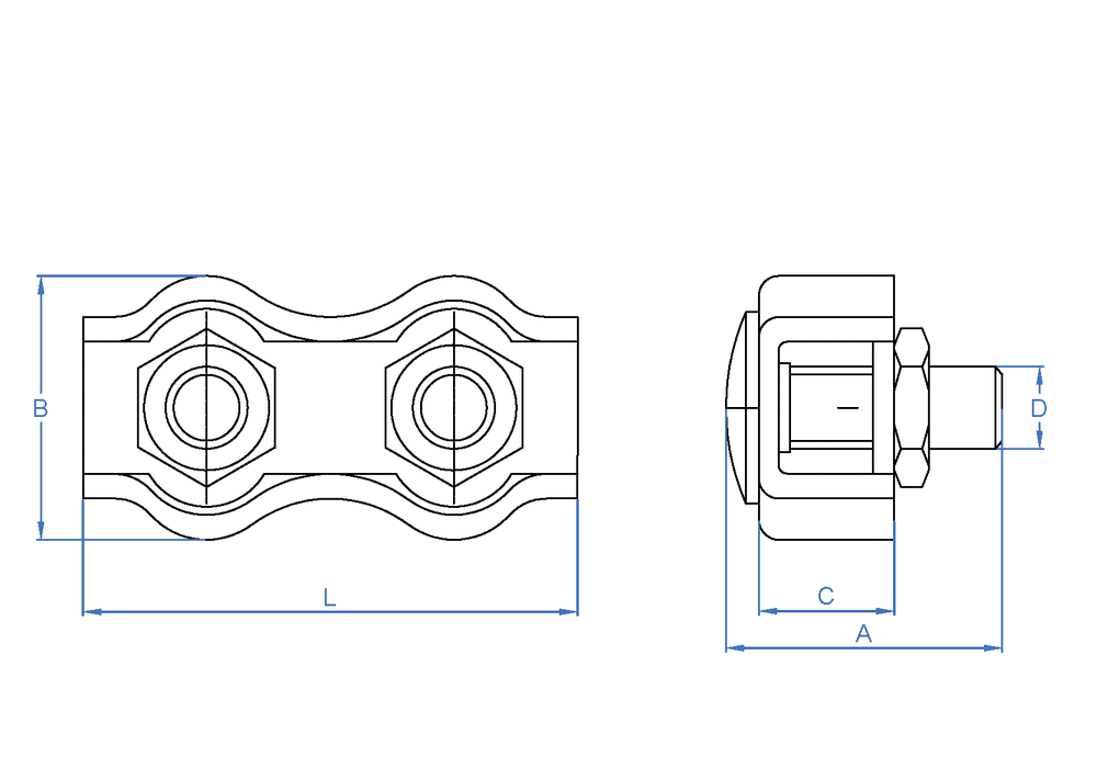 Sujetacables plano doble, diseñado para la sujeción de cables, cadenas o cuerdas. Permite unir diferentes cables entre sí o asegurar gazas con facilidad. Cuenta con dos tuercas métricas, que aprisionan el cable contra una placa metálica. Está fabricado en acero zincado.