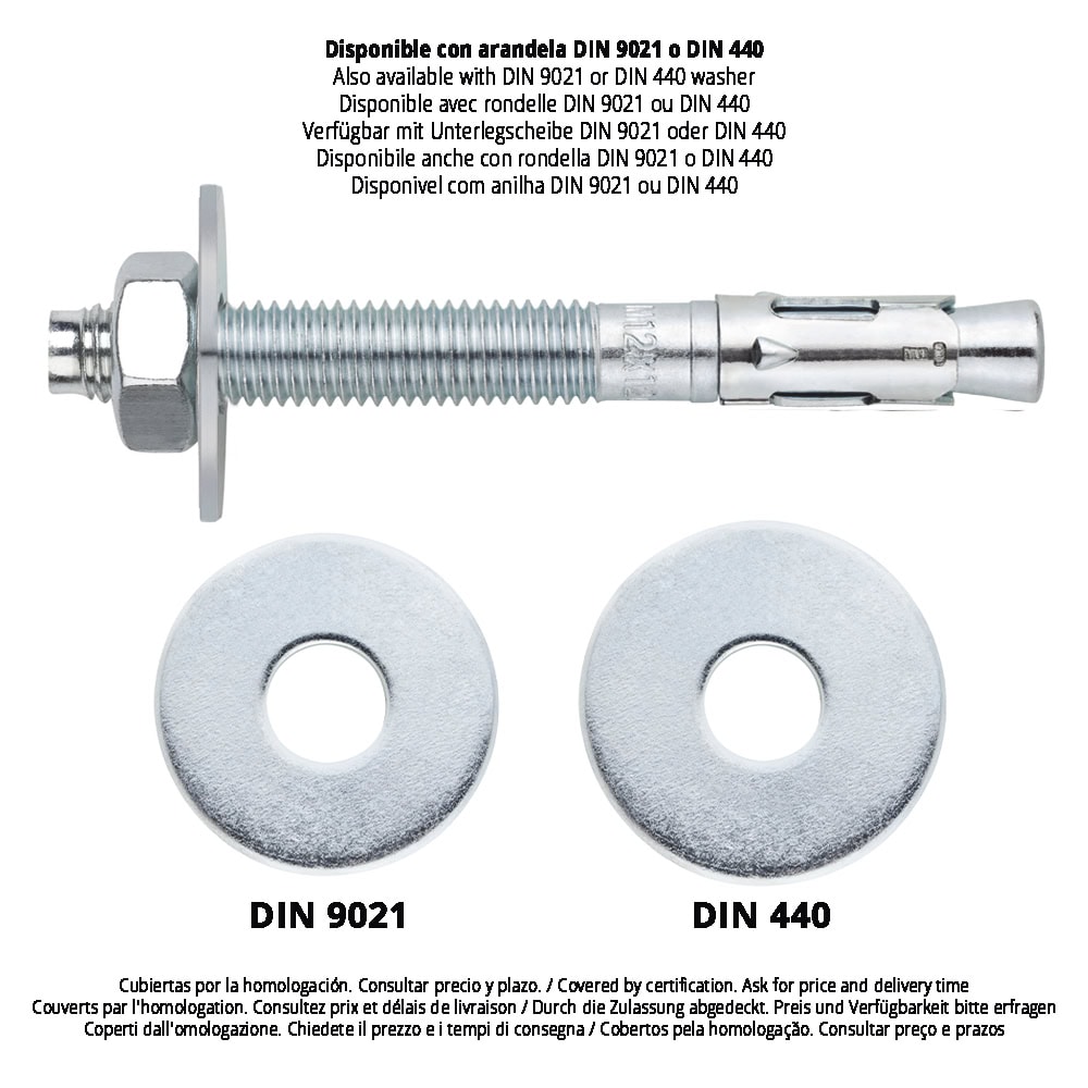 tfix - Espessura máx. a fixar 90 SW - Chave para instalação 17 df - Ø Elemento a fixar 12 Tins - Par de aperto (Nm) 35 hef - Profundidade efetiva 55 hnom - Profundidade min. de instalação 67 h1 - Profundidade min. do furo 75 d0 - Ø Broca 10 hmin - Espessura min. do material base 110 L - Comprimento 170 AM10210 M10 x 210 Ø10 130 110 0 50 150 8423533011305
