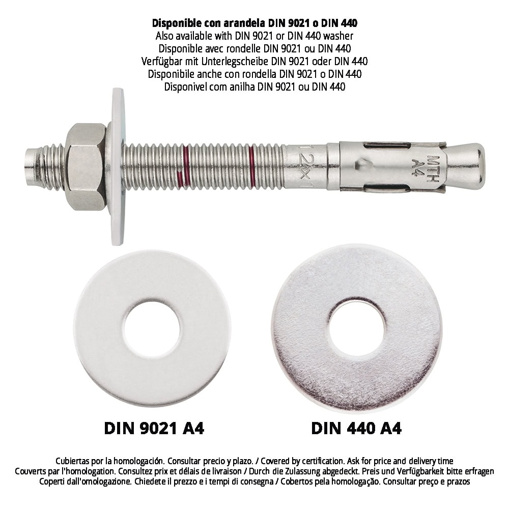 tfix - Espessura máx. a fixar 90 SW - Chave para instalação 17 df - Ø Elemento a fixar 12 Tins - Par de aperto (Nm) 35 hef - Profundidade efetiva 55 hnom - Profundidade min. de instalação 67 h1 - Profundidade min. do furo 75 d0 - Ø Broca 10 hmin - Espessura min. do material base 110 L - Comprimento 170 MIA412075 ● M12 x 75 Ø12 5 100 C 0 50 300 8423533579737