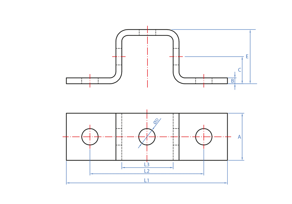 Ponte de união para guias perfuradas Indextrut. Permite conectar perfis sobrepostos perpendicularmente com parafusos hexagonais e porcas. Garante uma união segura e resistente das guias em diferentes tipos de instalações. É feita de aço com revestimento zincado.