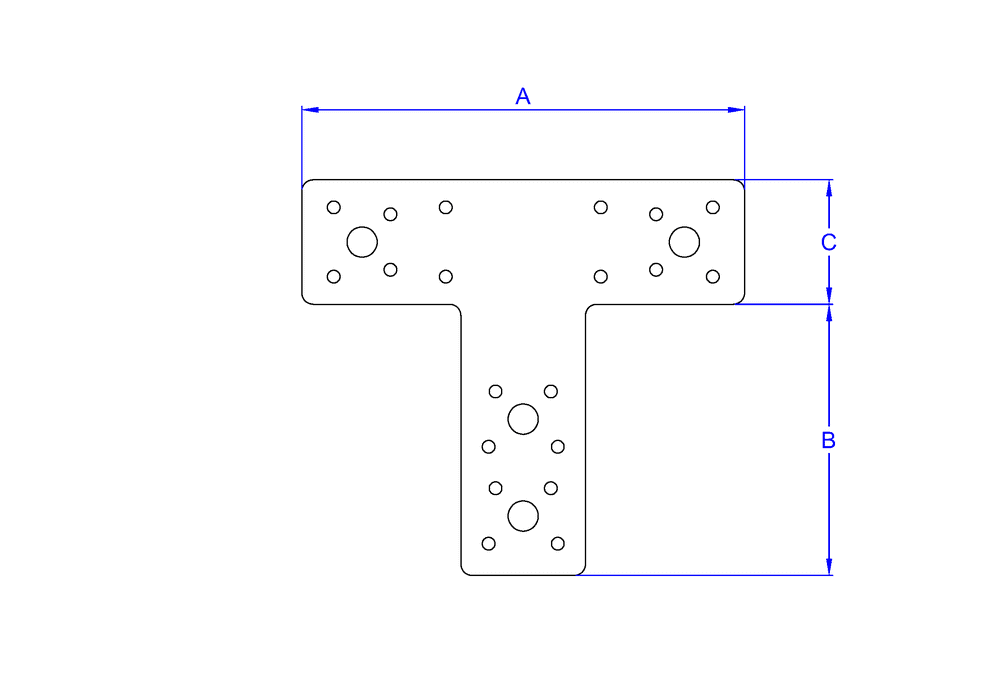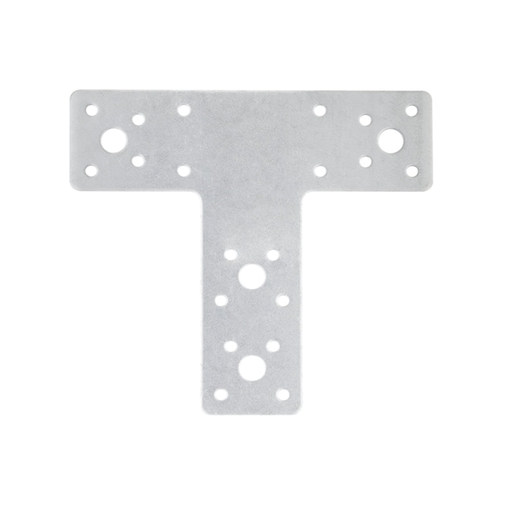 Placa em ‘T’ para a ligação de peças de madeira. Permite reforçar ligações ou fixar peças de madeira maciça, laminada ou composta entre si. Pode ser utilizada na junção entre pilares e vigas ou na montagem de portas e janelas. É fabricada em aço e possui um revestimento Atlantis C2-L.