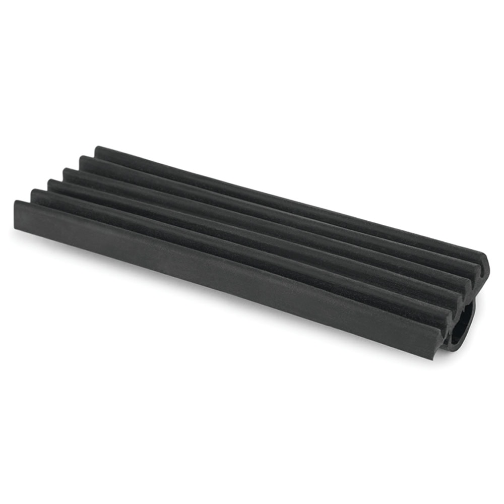 Perfil de borracha isofónica para guias perfuradas. Encaixado no perfil, permite reduzir o ruído e mitigar as vibrações. É ideal para reforçar o isolamento acústico em diferentes tipos de instalações profissionais. É fácil de instalar nas guias perfuradas. É feito de borracha EPDM.
